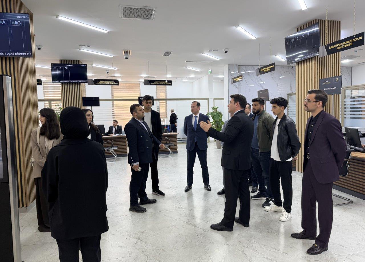Tələbələrə “Gəncə KOB” evinin iş prosesi və burada sahibkarlara göstərilən xidmətlər barədə məlumat verilib.